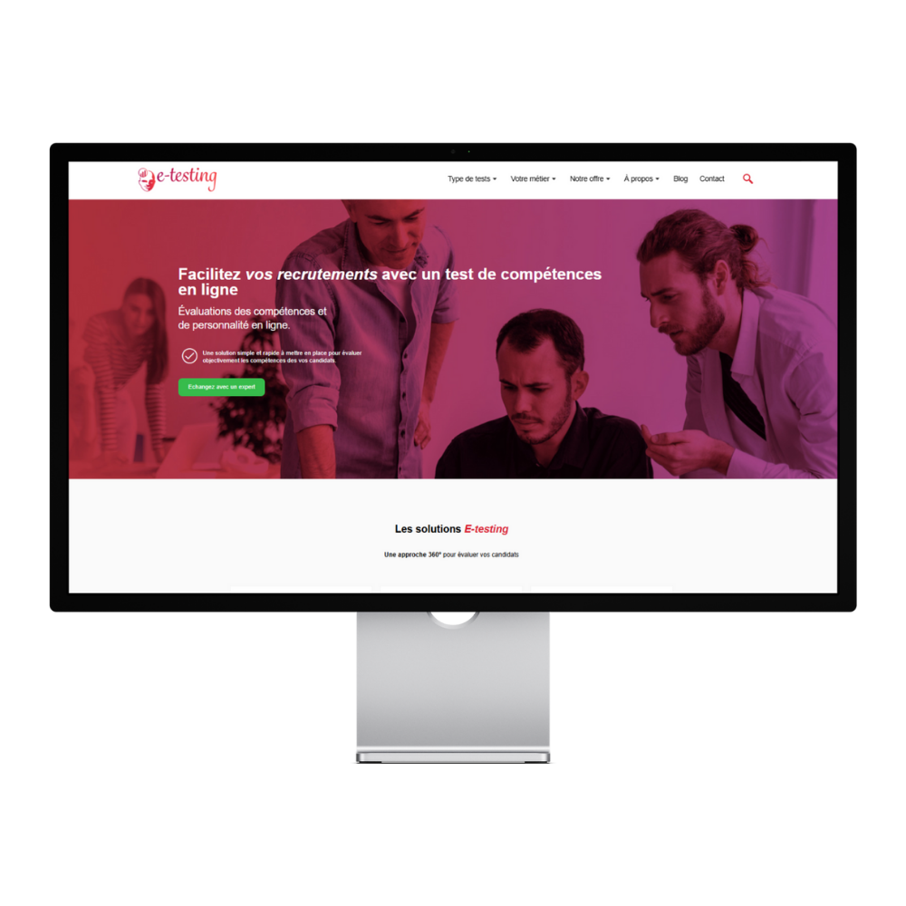 En 2023, E-testing a l’ambition de faire une refonte de son site, car visuellement pas au goût du jour. Le but à travers cette refonte était donc de donner un aspect visuel plus professionnel et moderne au site.